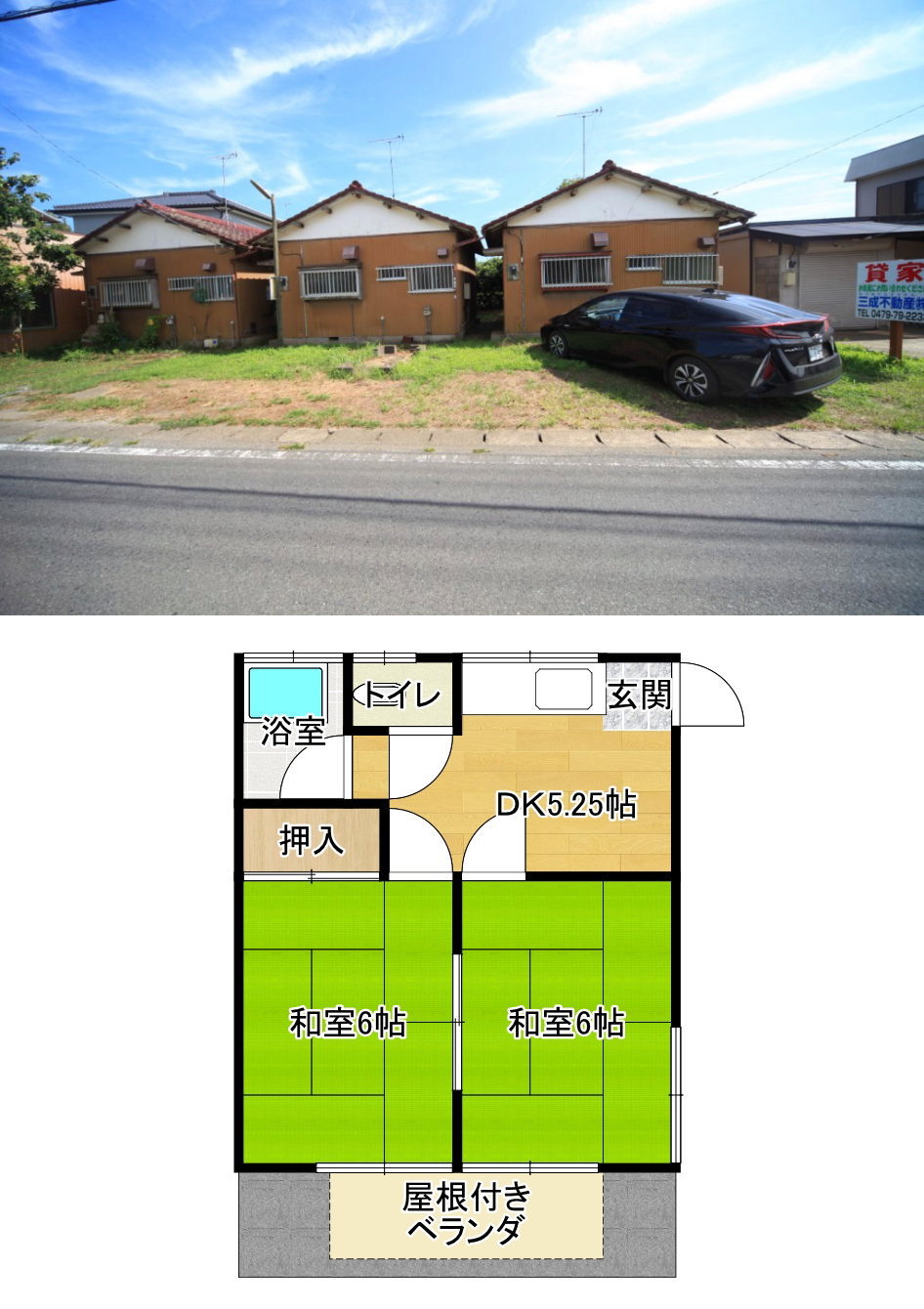 | 物件所在 | 旭市泉川(あさひしいずみかわ) | 間取り | 2DK戸建貸家 |