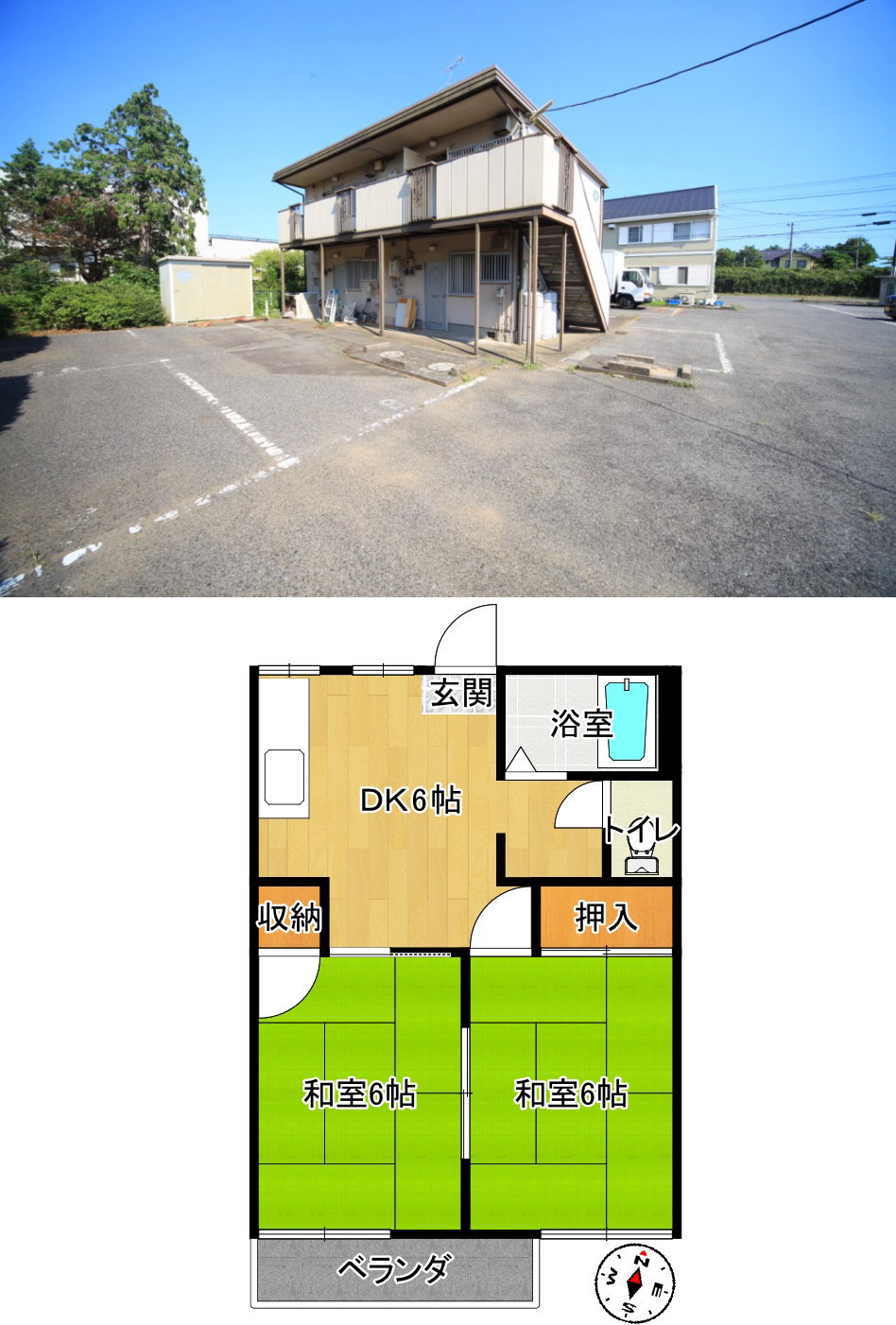 | 物件所在 | 匝瑳市上谷中(そうさしじょうやなか) | 間取り | 2DK(2階角部屋) |