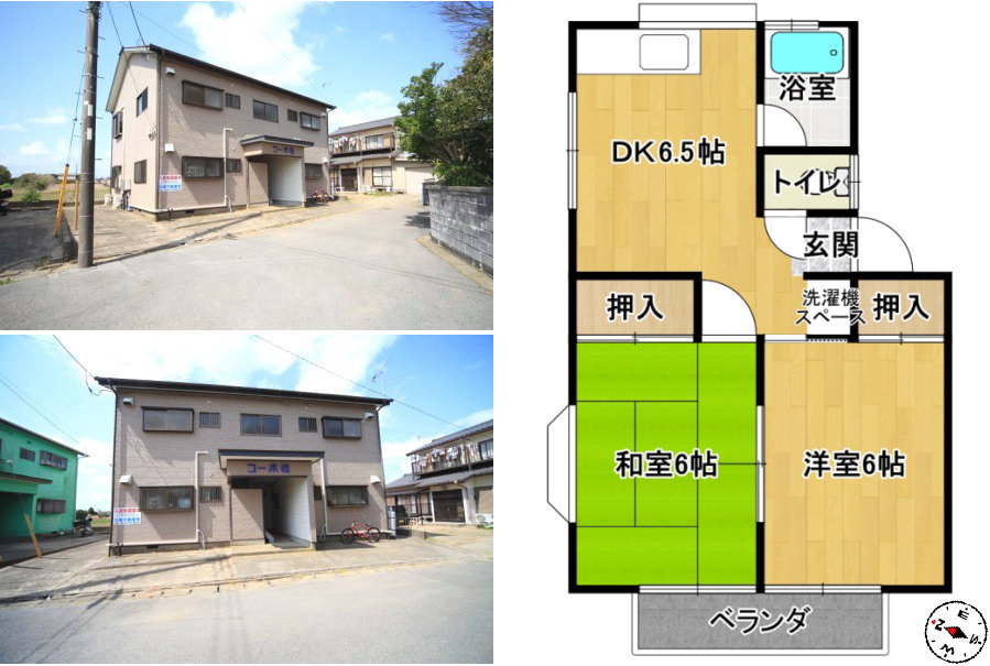 | 物件所在 | 匝瑳市東谷(そうさしひがしや) | 間取り | 2DK(2階角部屋) |