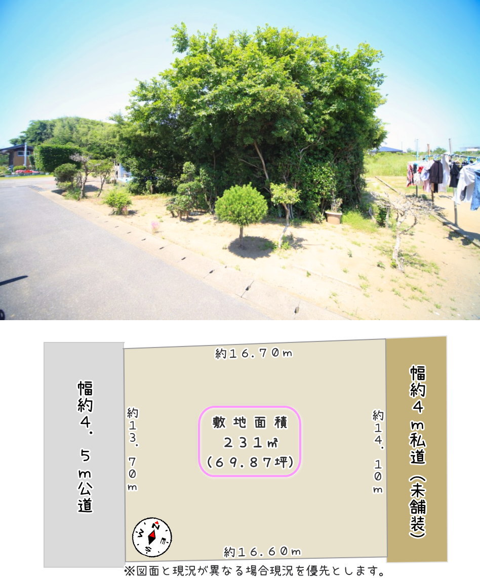 | 土地面積 | 231㎡(69.87坪) | 地目 | 雑種地 |