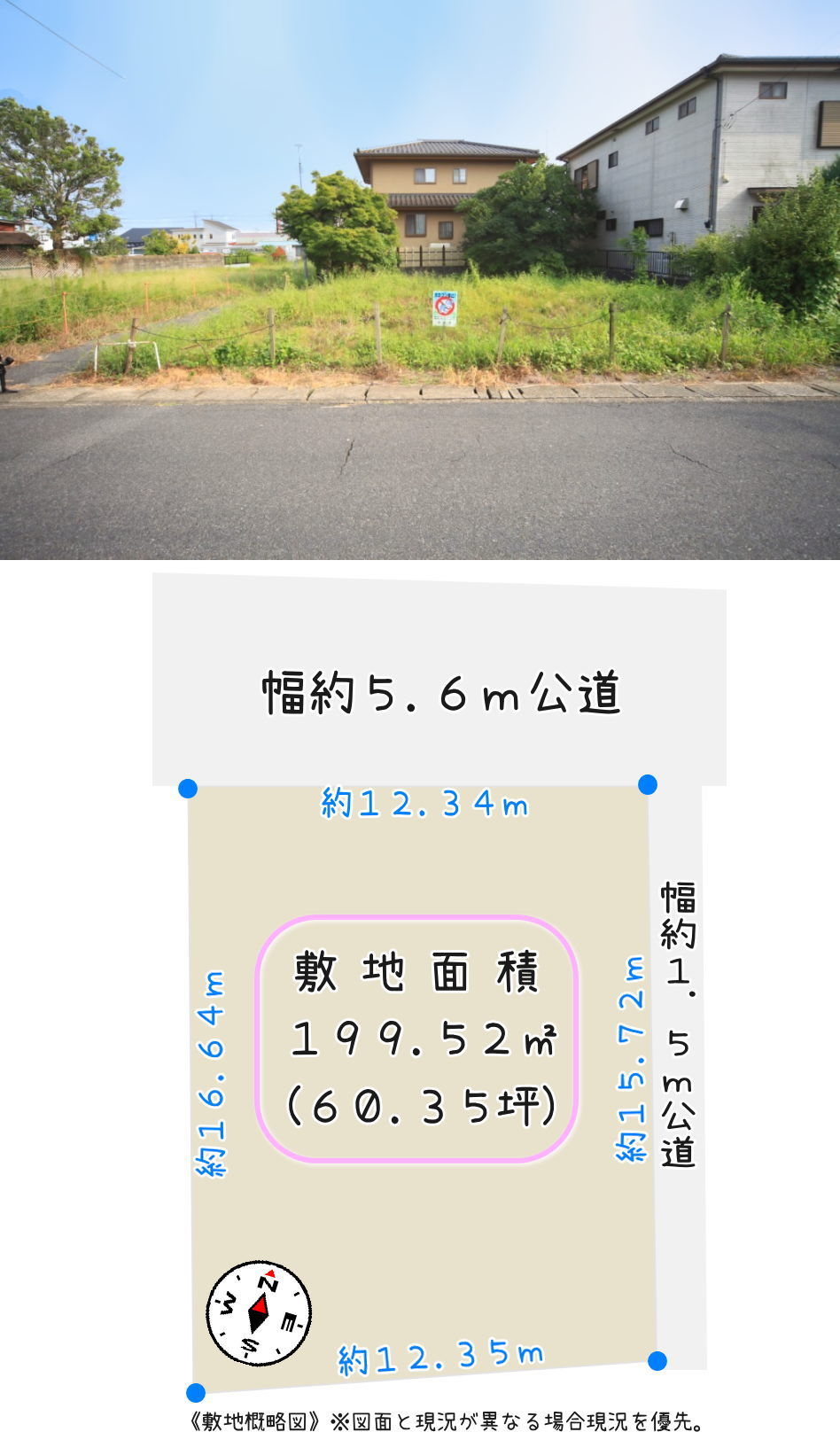 | 接道 | 北西側幅約5.6m公道と東側約1.5m公道の角地(東側公道は非道路) | 法令制限 | 日影規制 居住誘導区域内・都市機能誘導区域内 |