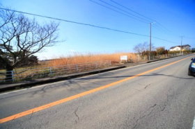 県道と町道に面した2方向道路。県道は水路(橋脚)を介し接道