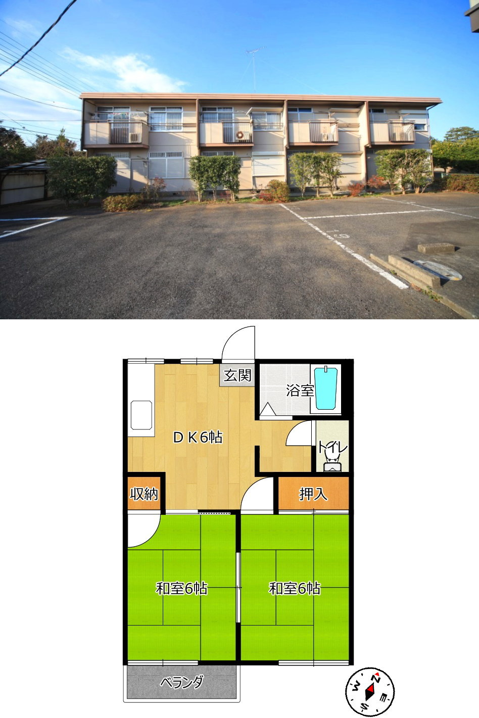 | 物件所在 | 匝瑳市上谷中(そうさしじょうやなか) | 間取り | 2DK(2階のお部屋) |