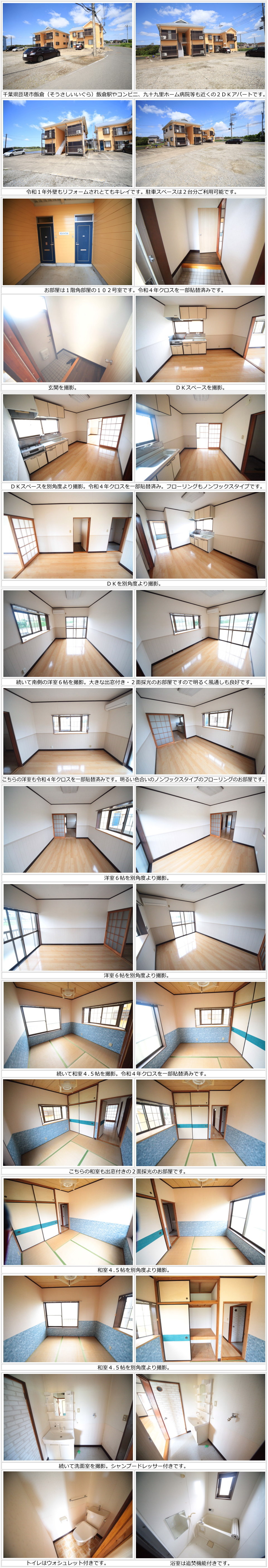 | 物件所在 | 匝瑳市飯倉(そうさしいいぐら) | 間取り | 2DK(1階角部屋) |