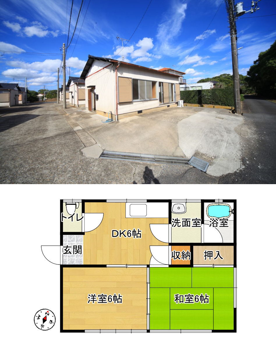 | 物件所在 | 匝瑳市平木(そうさしひらぎ) | 間取り | 2DK戸建貸家 |