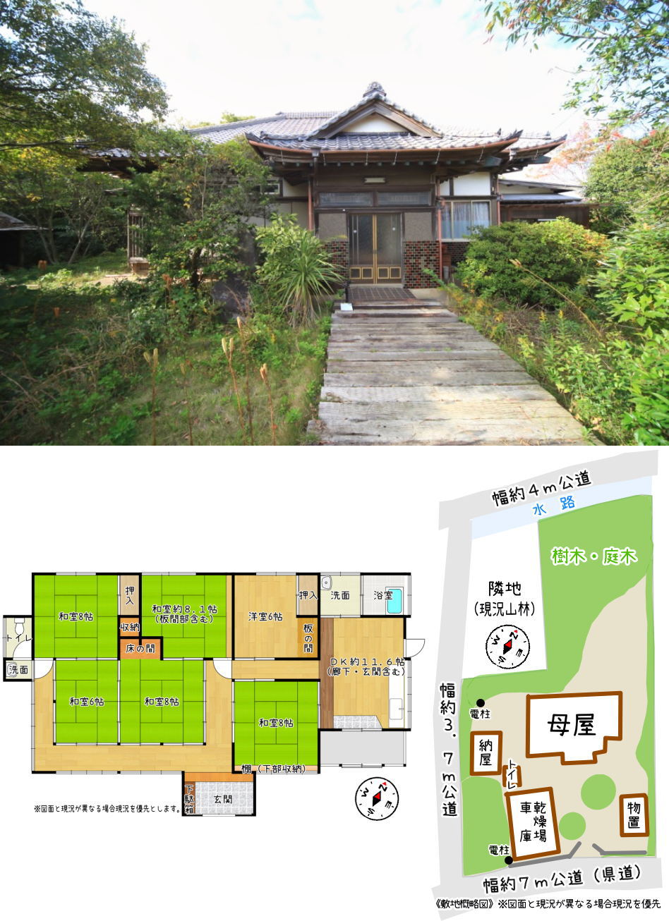 | 築年月 | 昭和50年5月築・昭和59年増築※旧耐震基準建物 | 構造 | 木造瓦葺平屋建て |