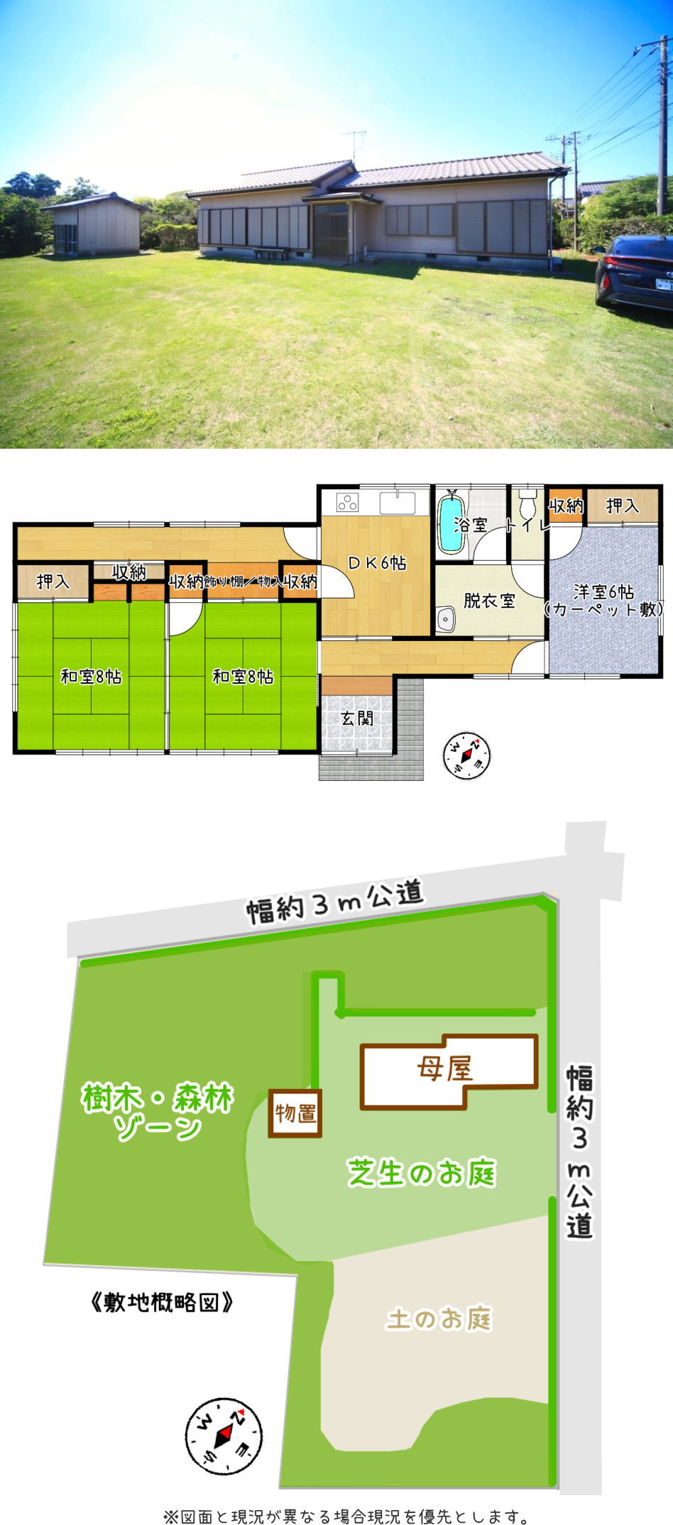 | ■物件ひとことメモ:野手浜へ約650m!潮騒の音が聴こえる住環境!広大な約745坪の広々敷地!別荘利用や田舎暮らし・民泊施設等にも好適な3DK平屋住宅です。広々した芝生のお庭+庭木や樹木も多数あります。菜園やドッグラン・BBQ等も楽しめる広いお庭!建物は落ち着いた雰囲気の和風平屋住宅です。閑静な通り沿いですのでのんびり暮らせそうなお宅です。 |