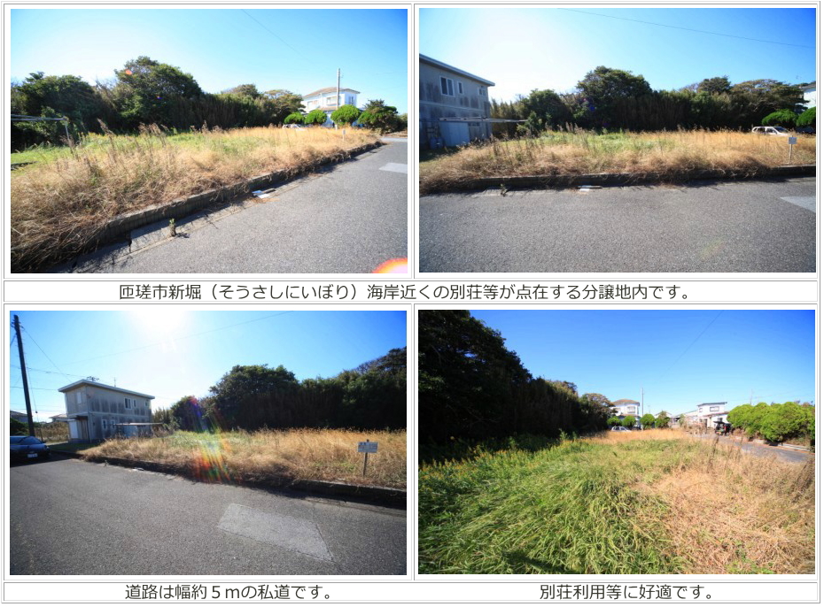 | 物件所在 | 匝瑳市新堀(そうさしにいぼり) | 販売価格 | 100万円 1坪あたり約28,129円 |