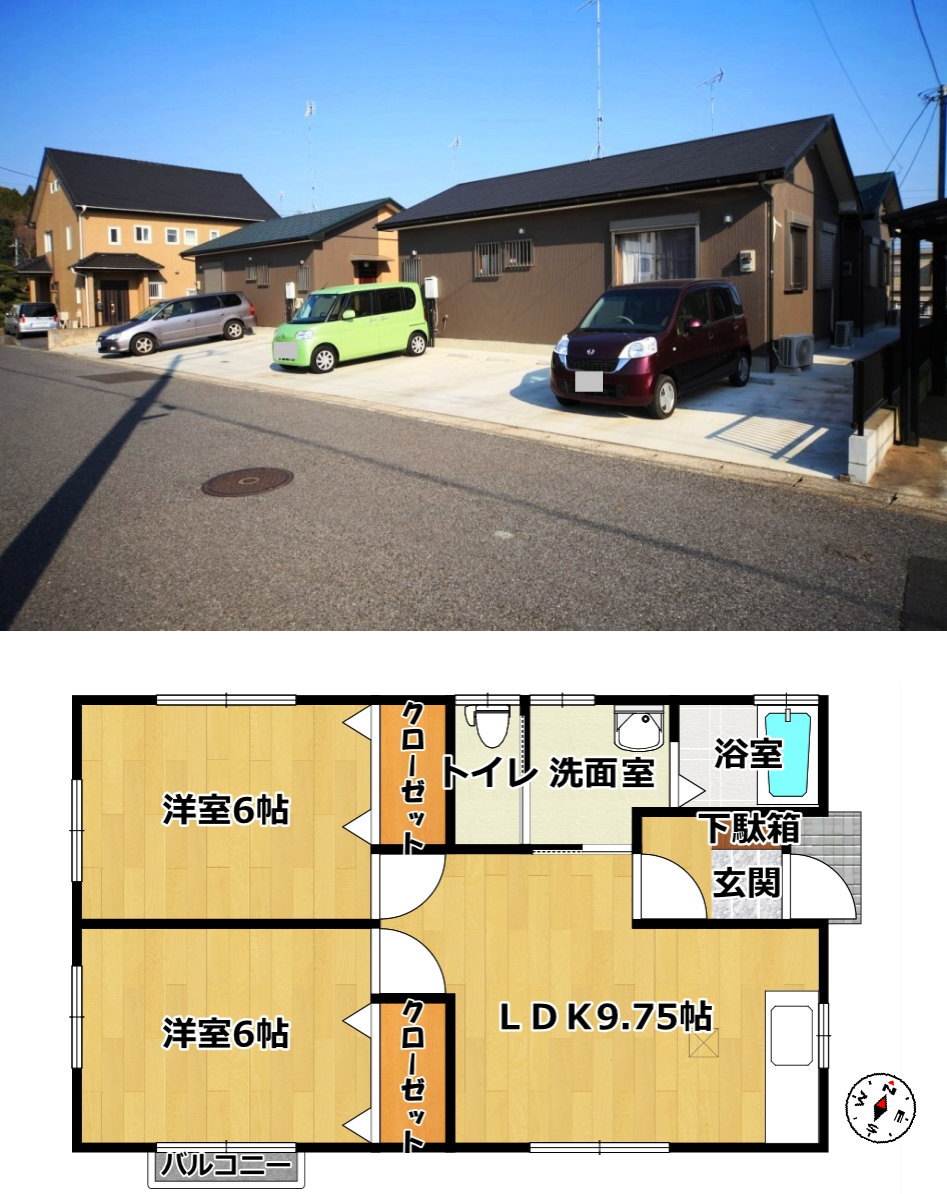 | 物件所在 | 匝瑳市飯倉台(そうさしいいぐらだい) | 間取り | 2LDK戸建貸家 |